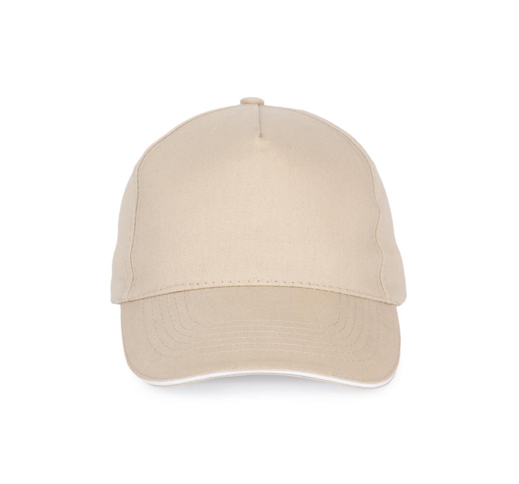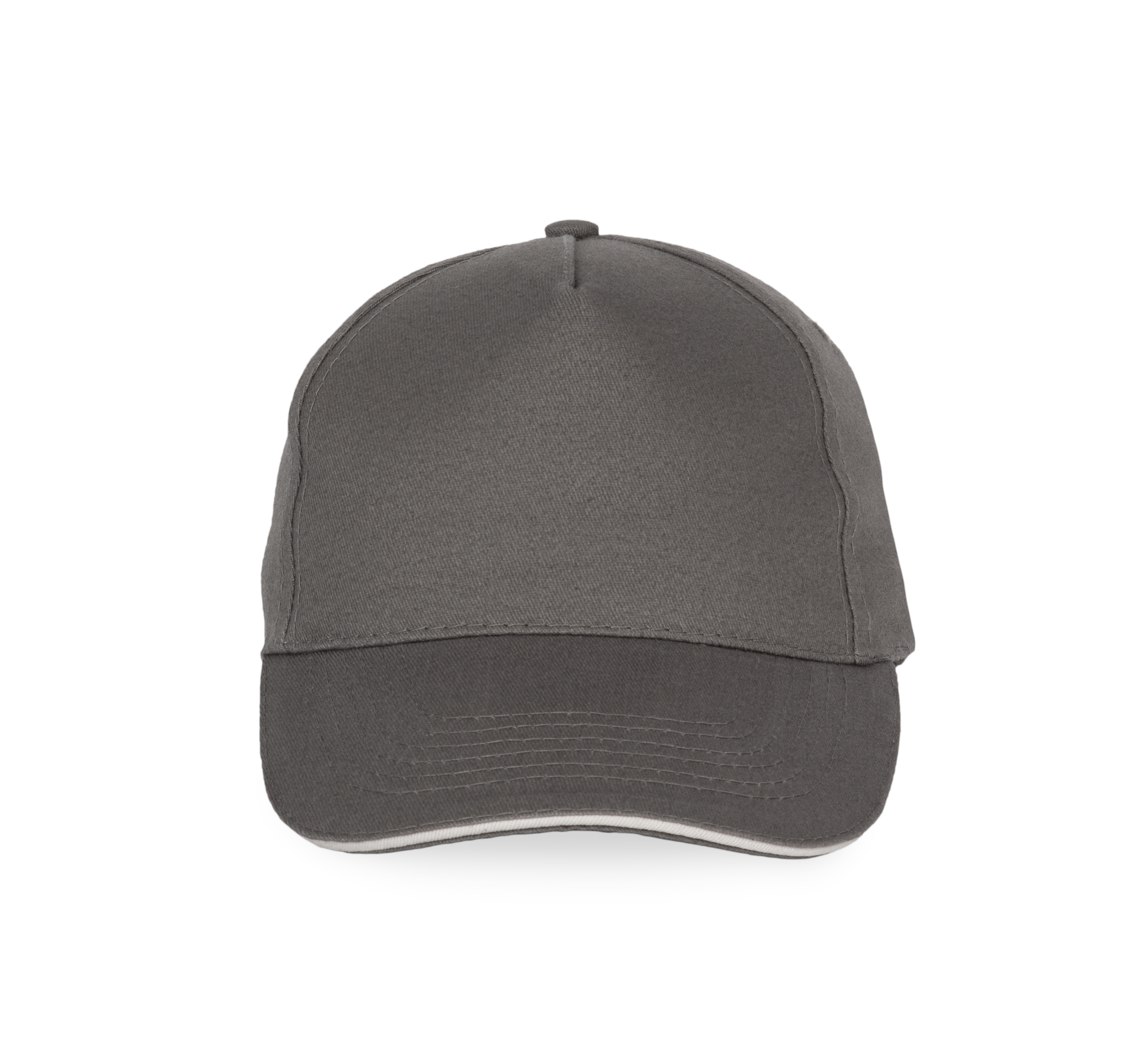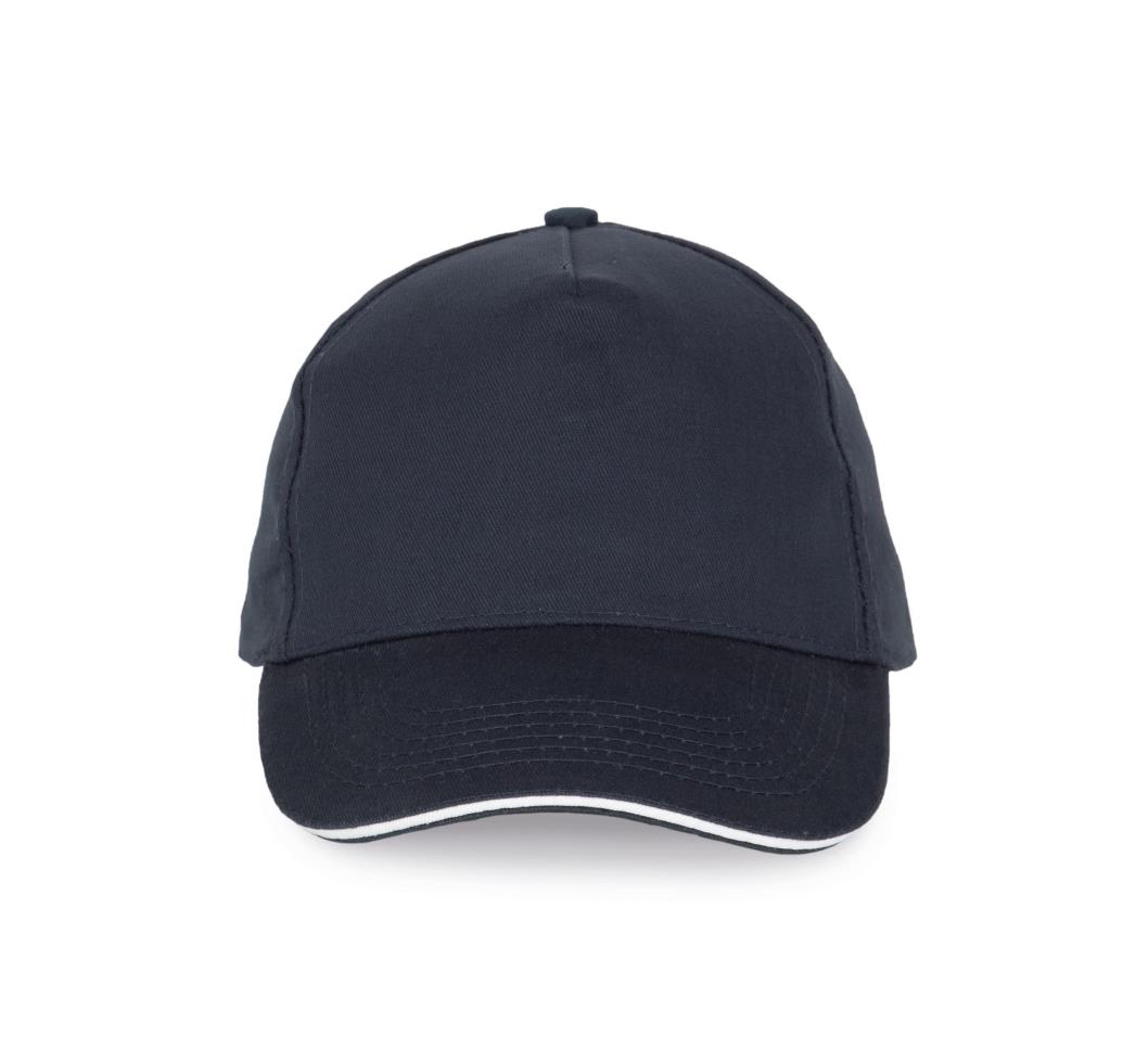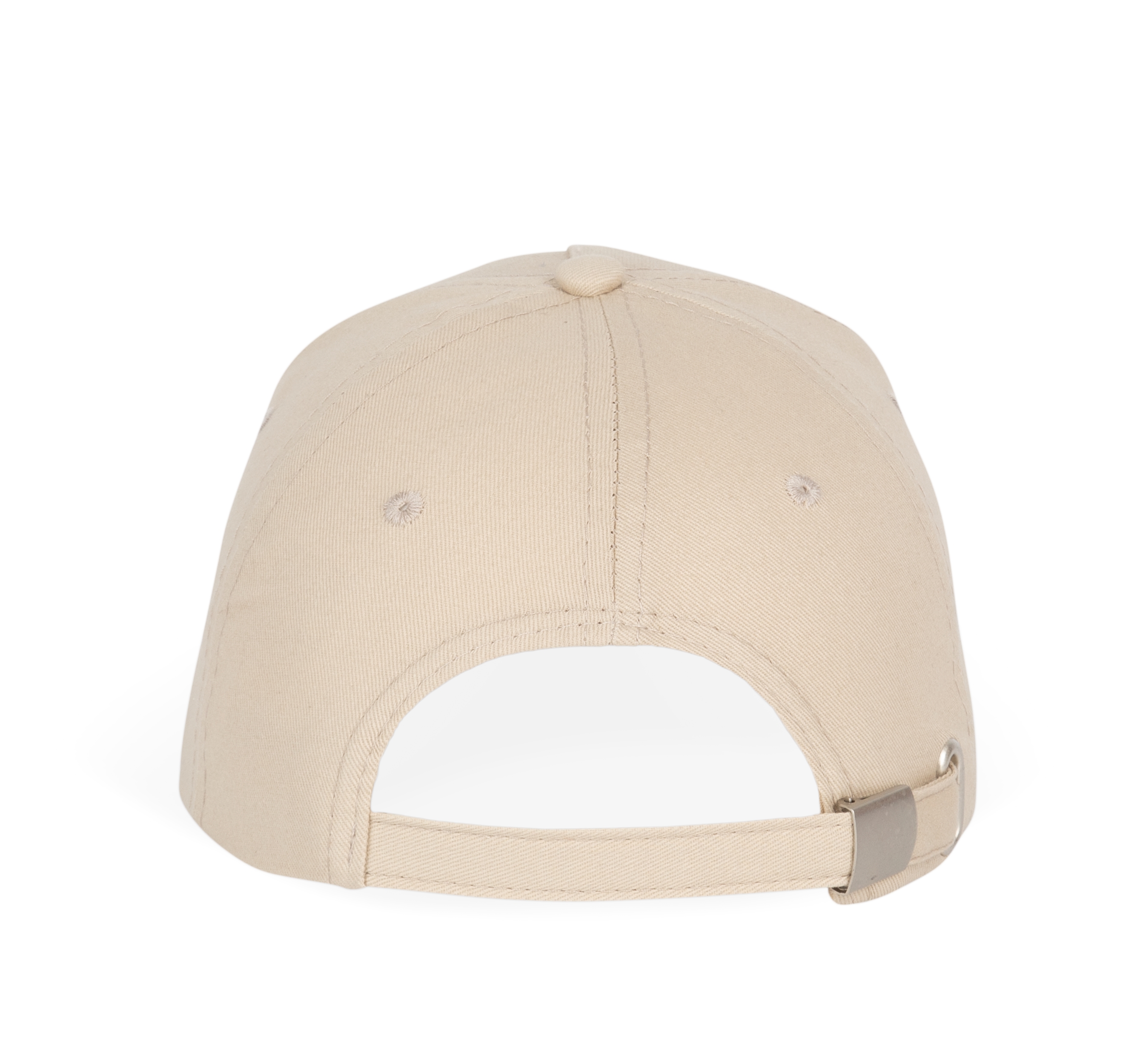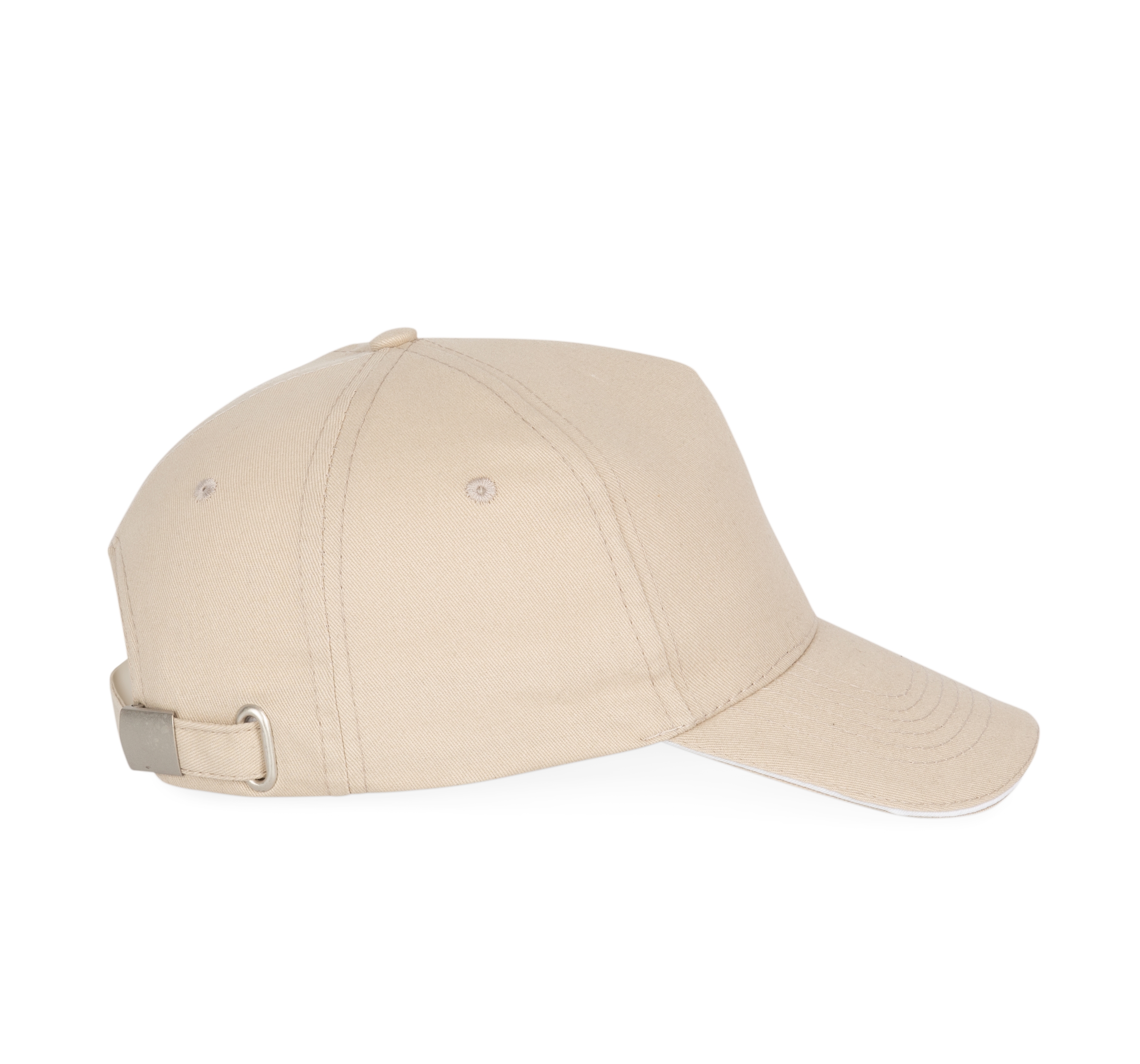 100% zwaar geborsteld sergé katoen. 5 panelen. Klep met contstrasterende bies. Katoenen zweetband. Verstelbare gesp-sluiting.