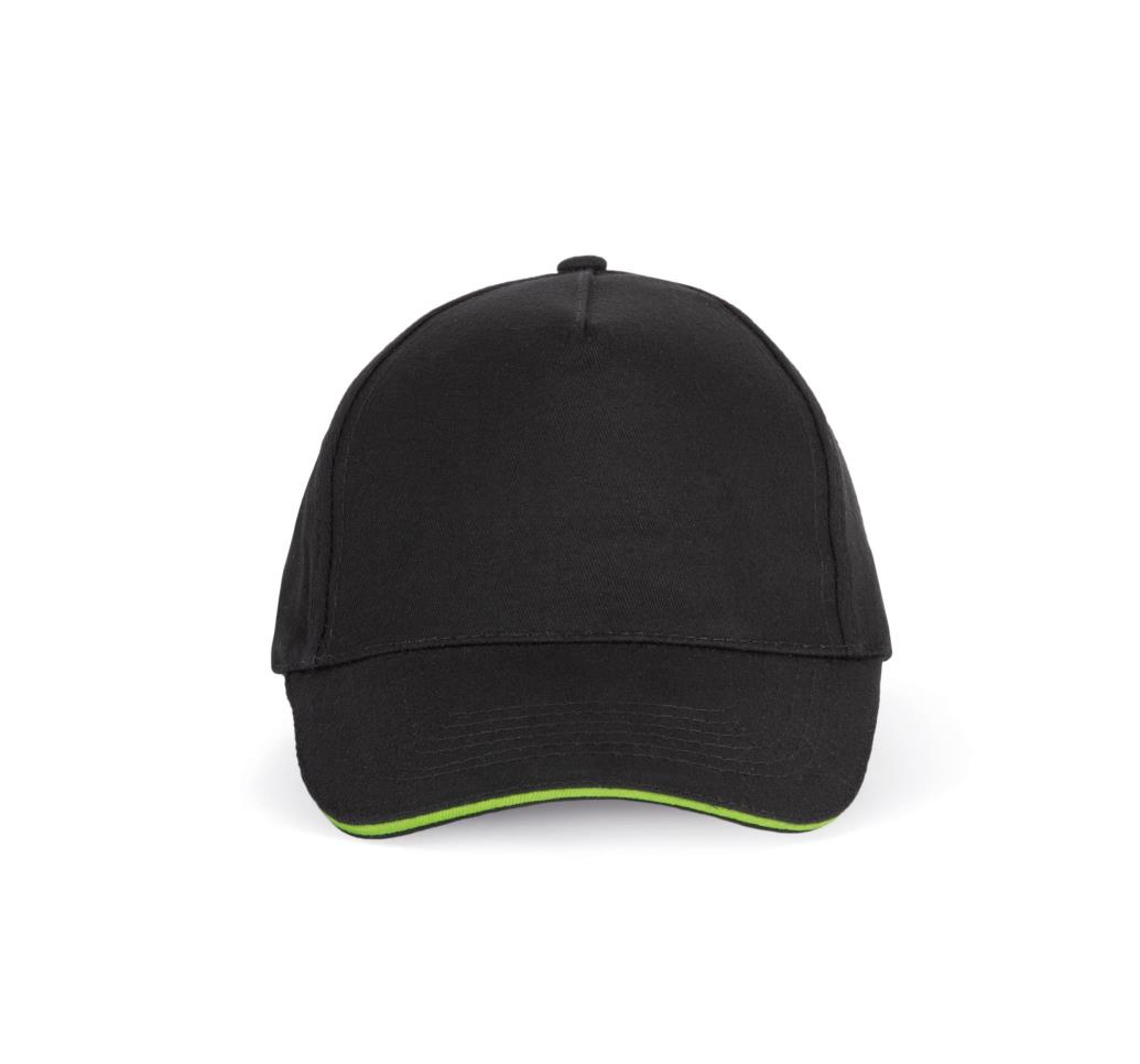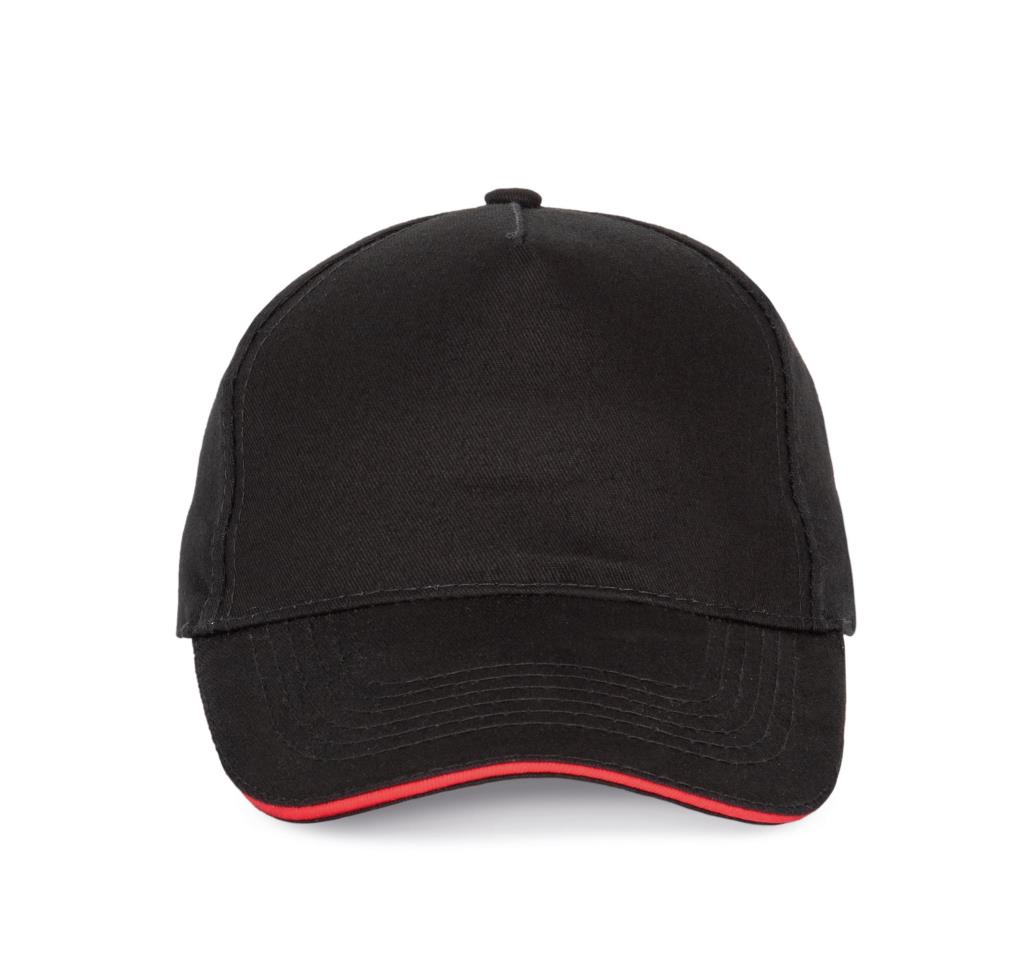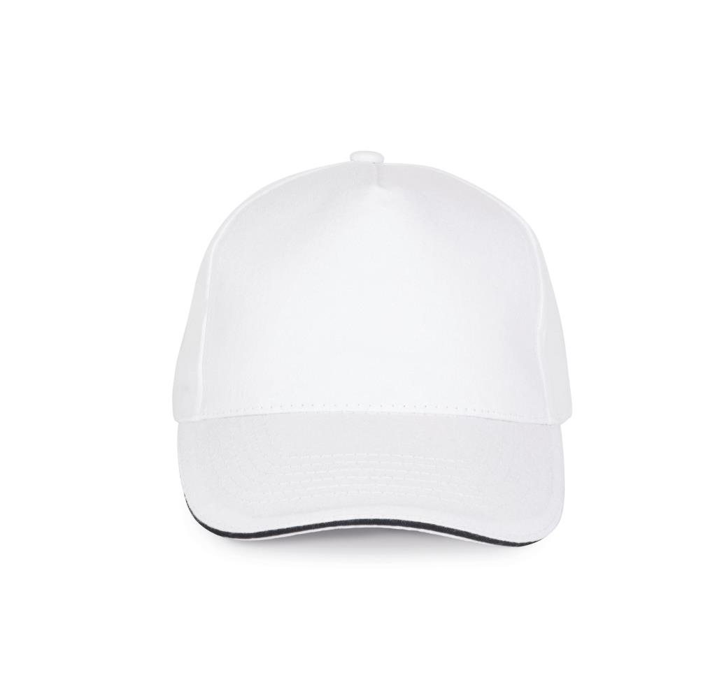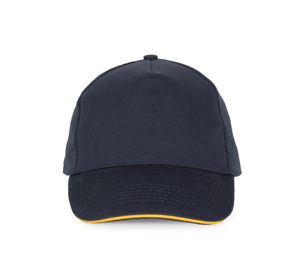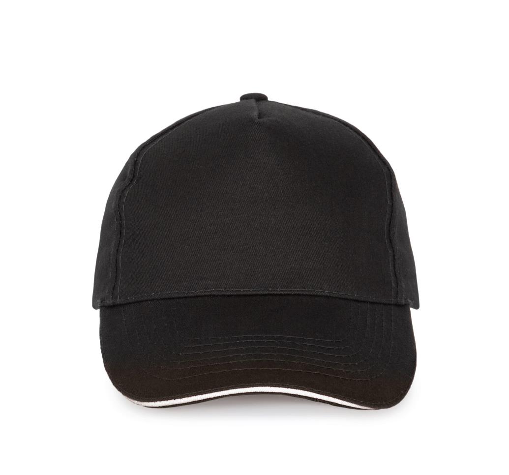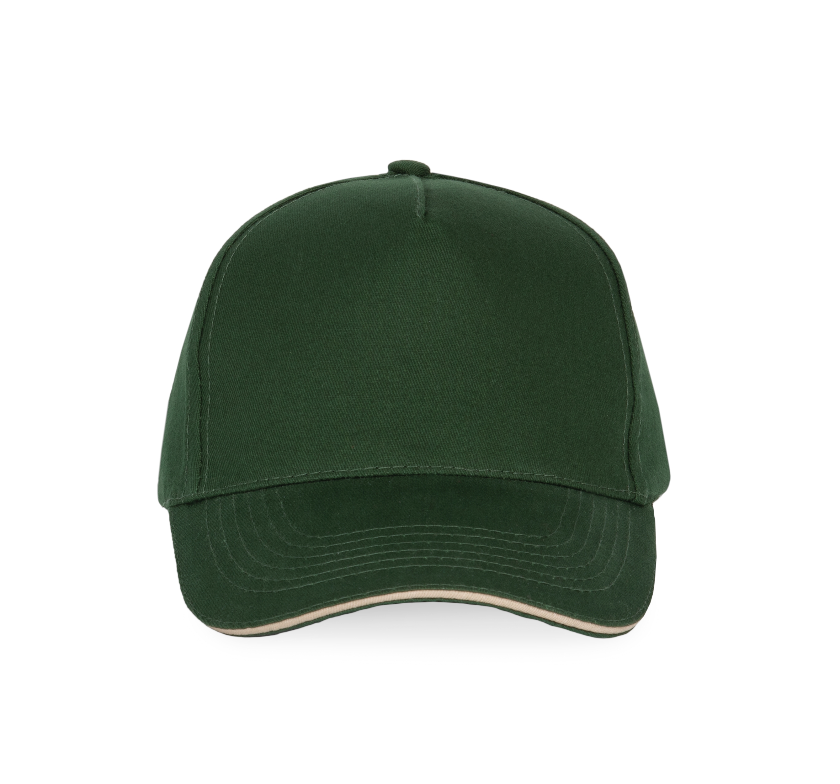 100% zwaar geborsteld sergé katoen. 5 panelen. Klep met contstrasterende bies. Katoenen zweetband. Verstelbare gesp-sluiting.