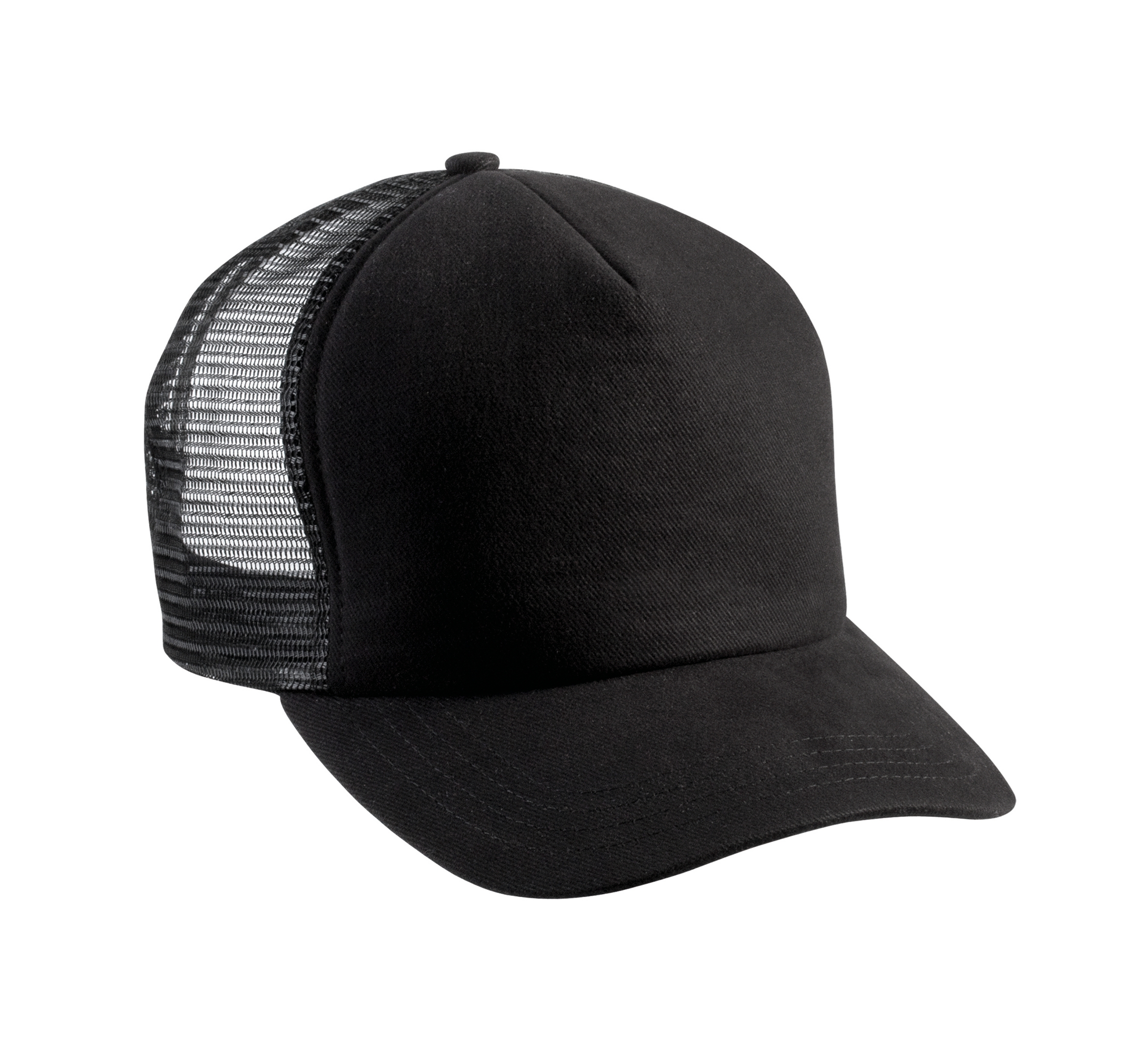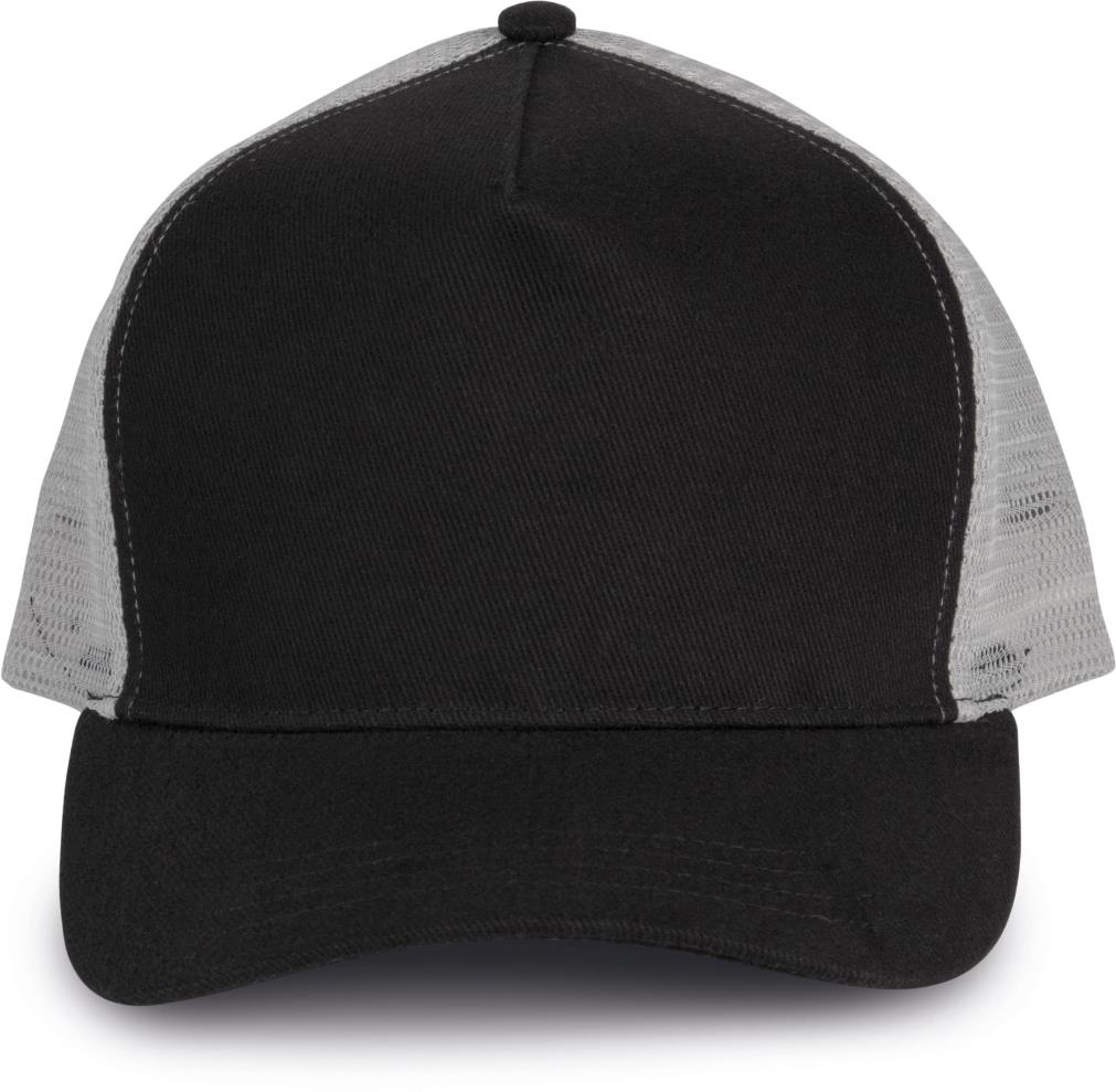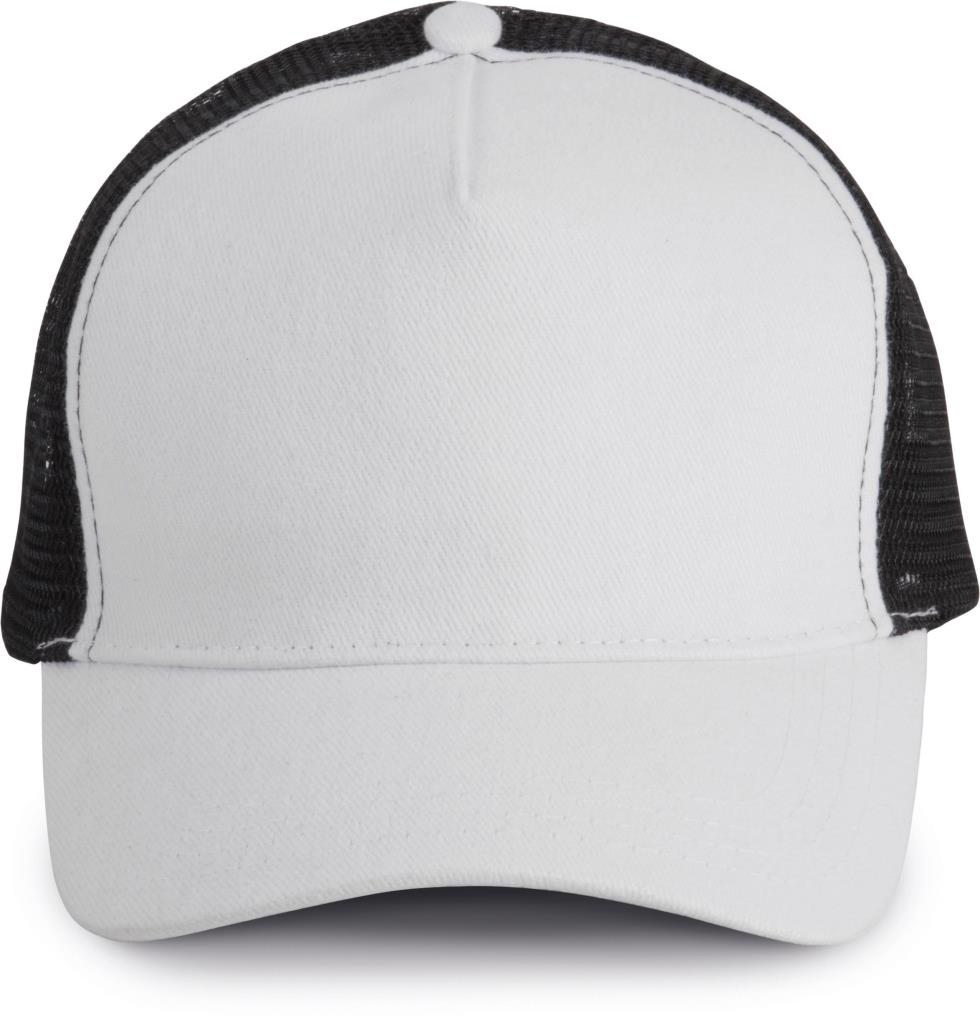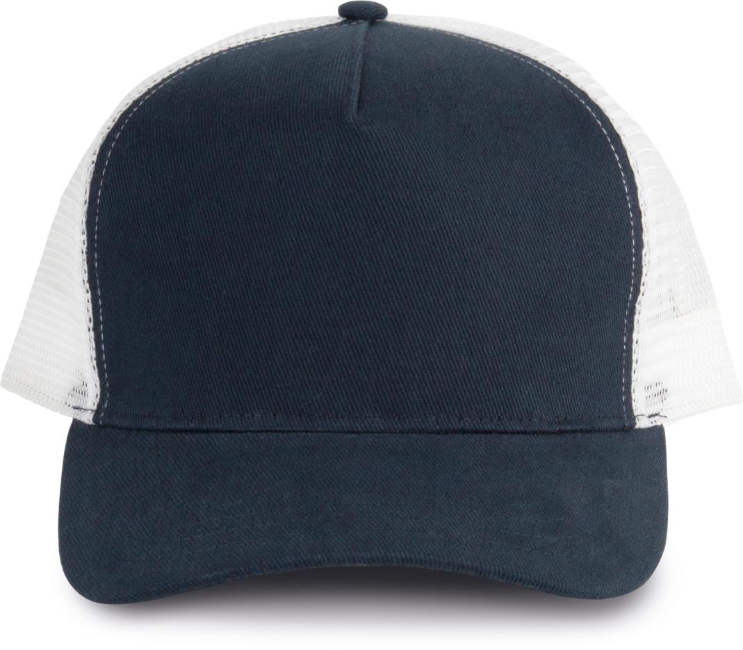 100% zwaar geborsteld katoen op frontpaneel en zonneklep, mesh 100% polyester. 5 panelen. Verstelbare druksluiting van plastic. Camouflage kleuren : 85% katoen/ 15% viscose.
