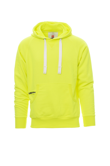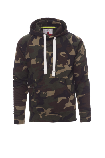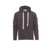 Herenhoodie met dubbel gestikte naden en wit trekkoord met contrasterend stiksel en metalen ringen, raglanmouwen, V-stiksel bij de hals, kangoeroezakken, kleine zak met rits, ribboorden met stretch aan de zoom en mouwen, versterkte naden.