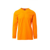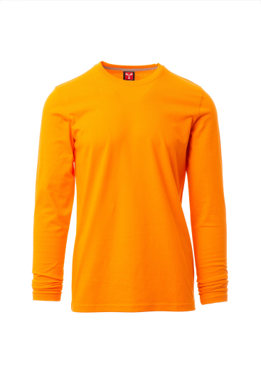 Heren-T-shirt met lange mouwen en ronde hals, met afgezette geribde halsrand van 1,5 cm van een mix met spandex met stiksel aan de buitenkant, contrasterende versterkingsband van schouder naar schouder zichtbaar aan de binnenkant van de nek, elastische naden, zijnaden.