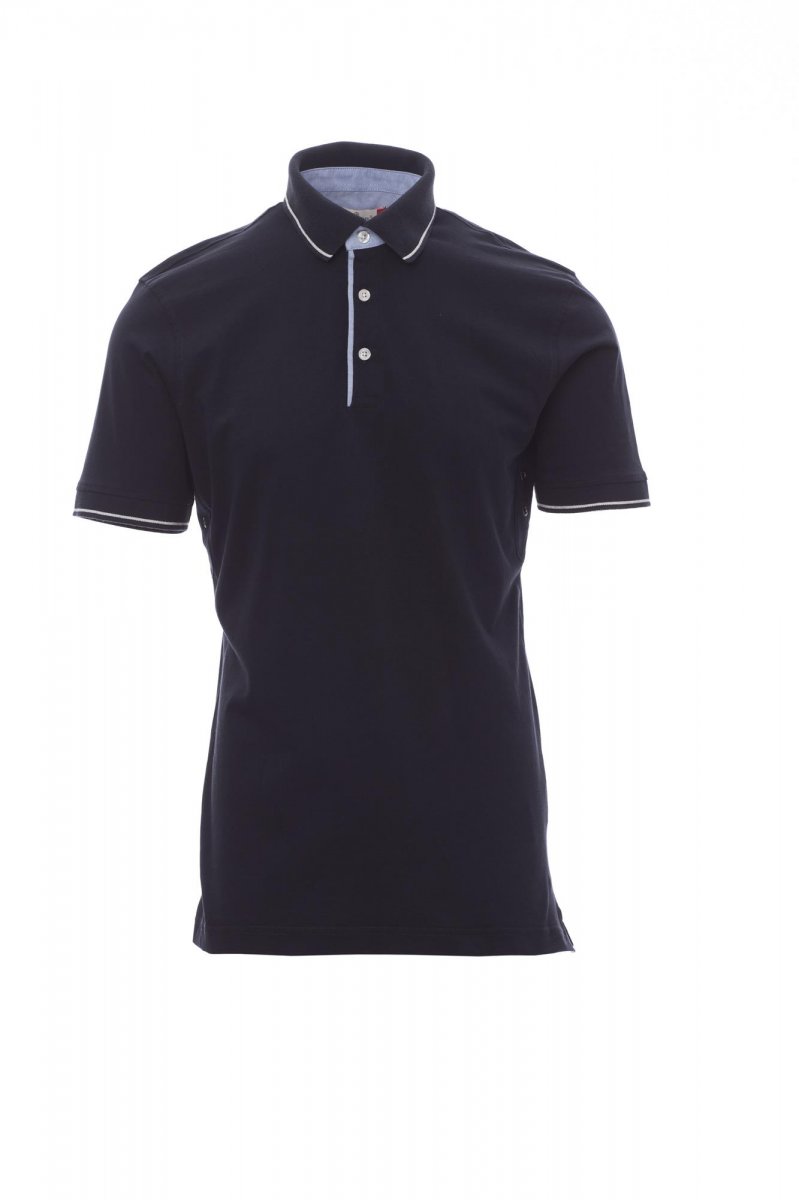 Herenpoloshirt met korte mouwen met 3 witte knopen, binnenkraag, overslag en zijsplitten in Oxfordblauw, ribkraag en mouwboorden met fijne contrasterende strepen, oogjes onder de arm, zijsplitten met versterkte naden, verborgen stiksels bij de kraag, versterkingsband aan de zijkant, elastische naden, band aan de binnenzijde van de nek