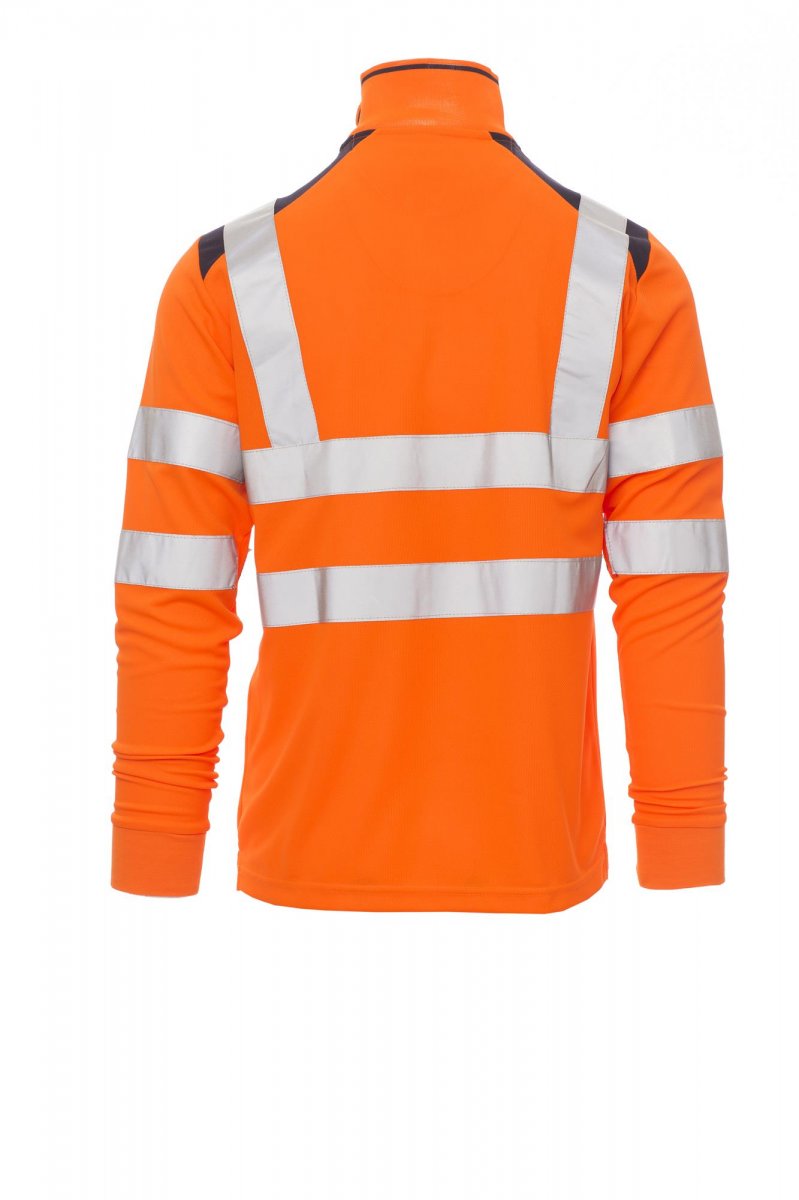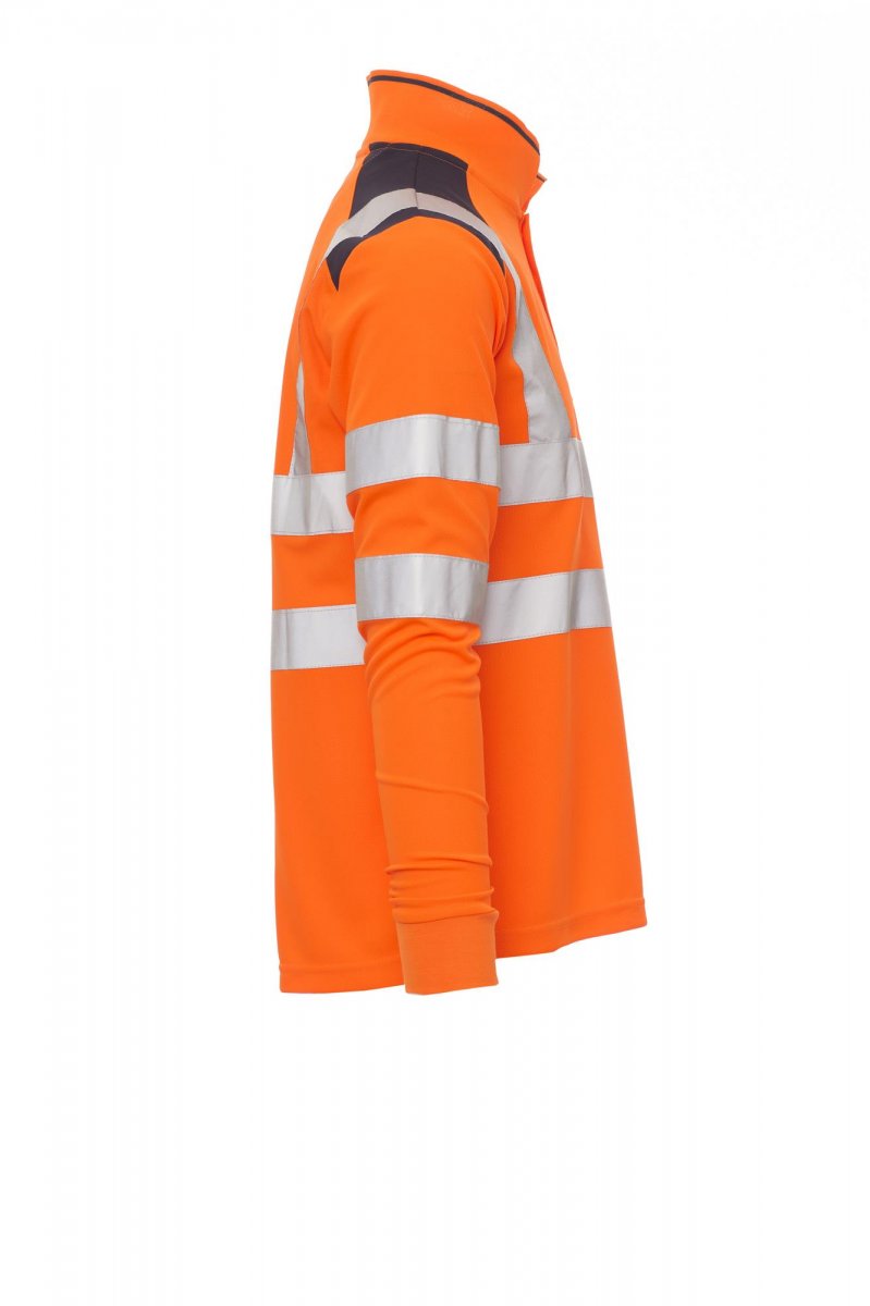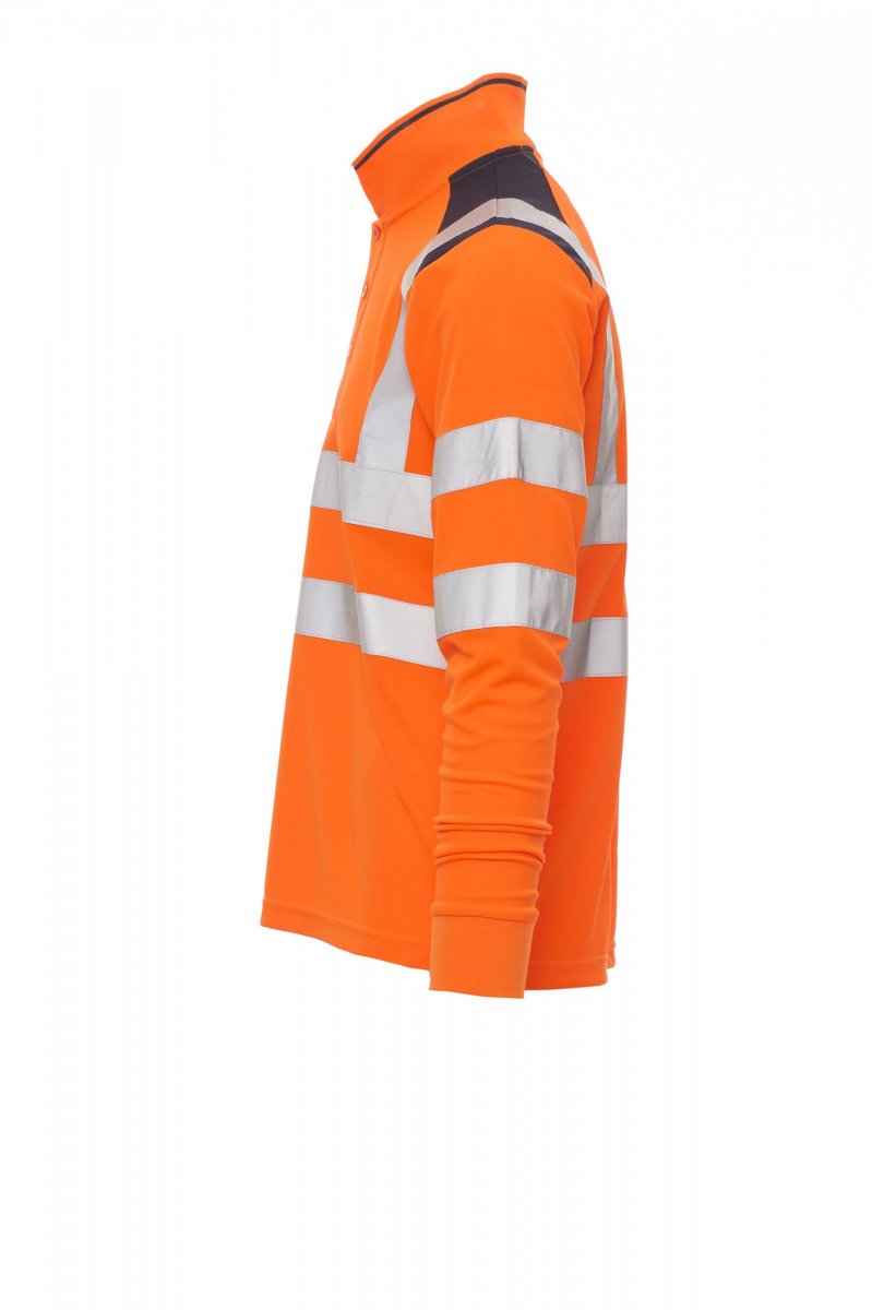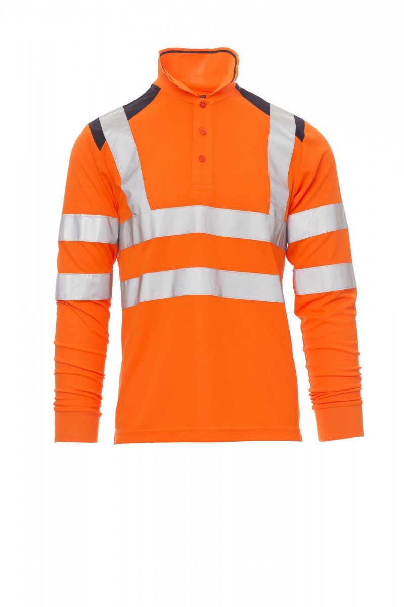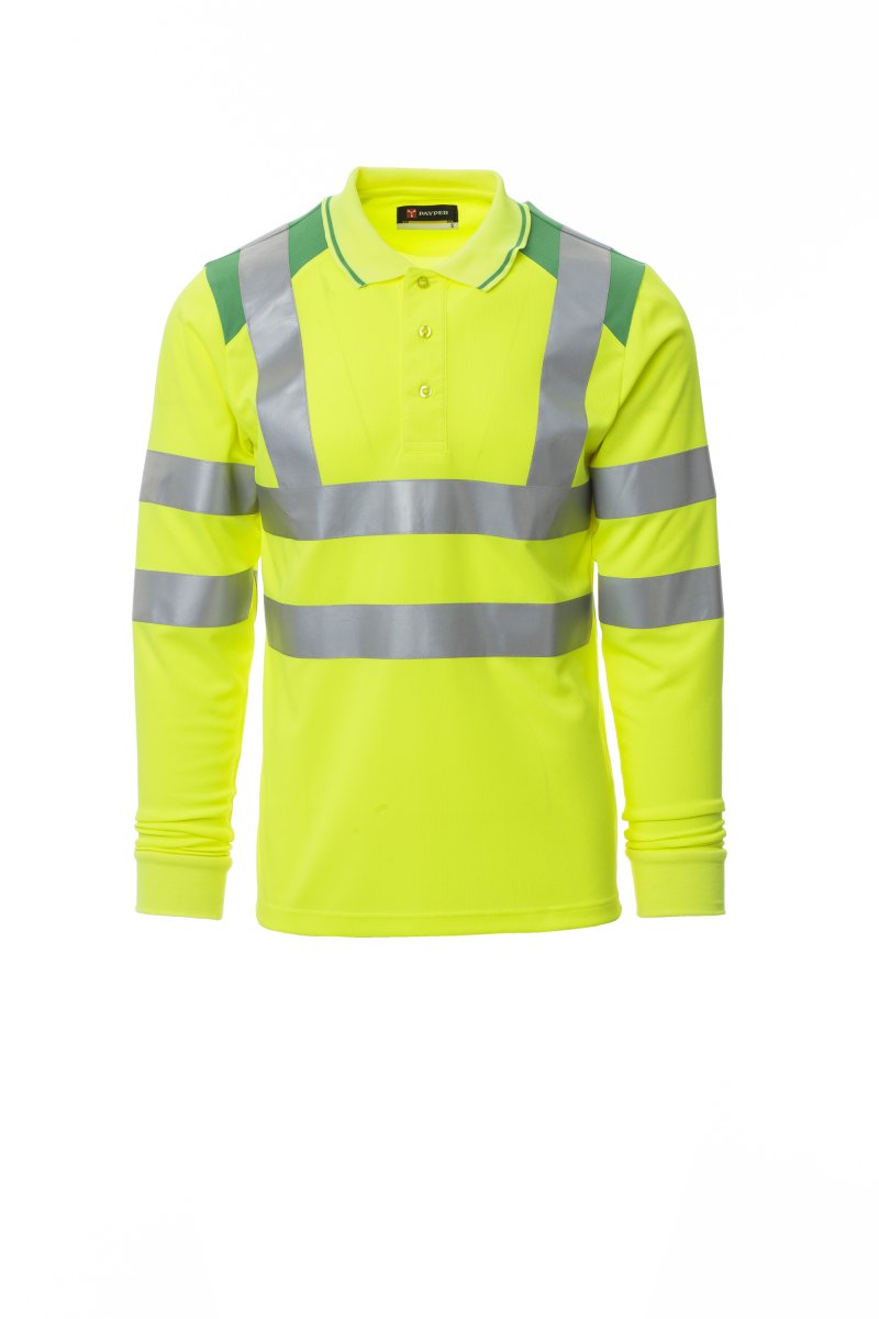 Herenpoloshirt met hoge zichtbaarheid, met lange mouwen, in twee kleuren, met reflecterende strepen, met drie bijpassende knopen met parelmoereffect, contrasterende fijne ribkraag en mouwrand, zijsplitten, verborgen stiksel bij de kraag.