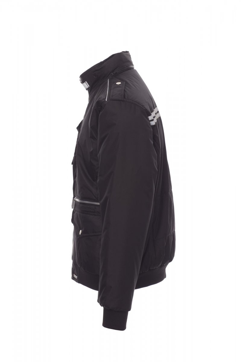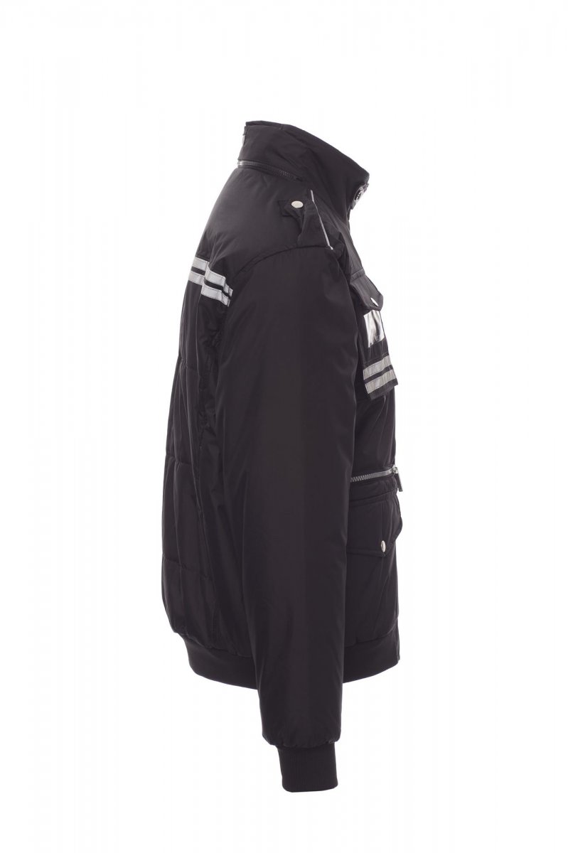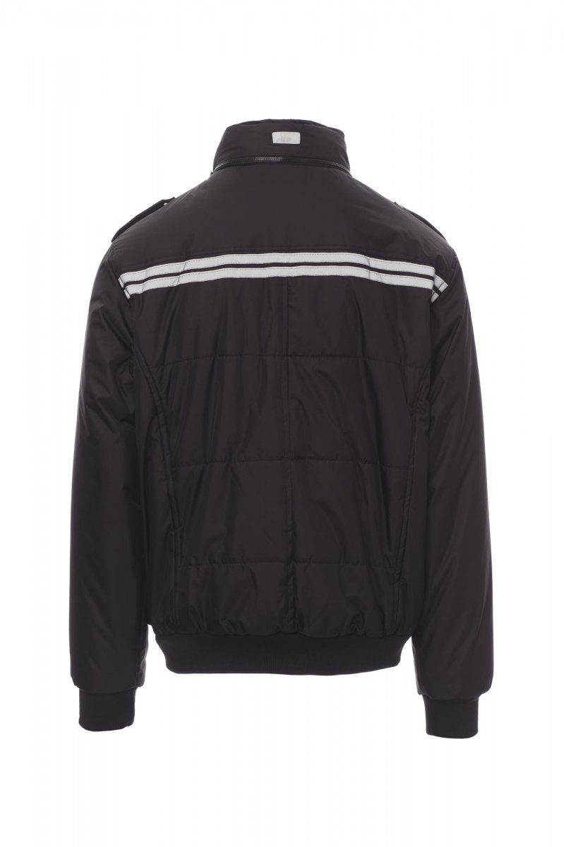 Casual, nauw aansluitende herenjas, met kunststof rits met metalen runner, uitvouwbare capuchon, ribboorden aan de taille en de manchetten, epauletten en kraag met rits, twee zakken met LOCK SYSTEM, twee zakken met rits, een zak met omkeerbare badgehouder, reflecterend pipingband bij de schouders en twee reflecterende strepen op borst en rug. Binnenzijde: gewatteerd, dichte, zilverkleurige voering, rugpand van microfleece, binnenkraag van fleece, een binnenzak.