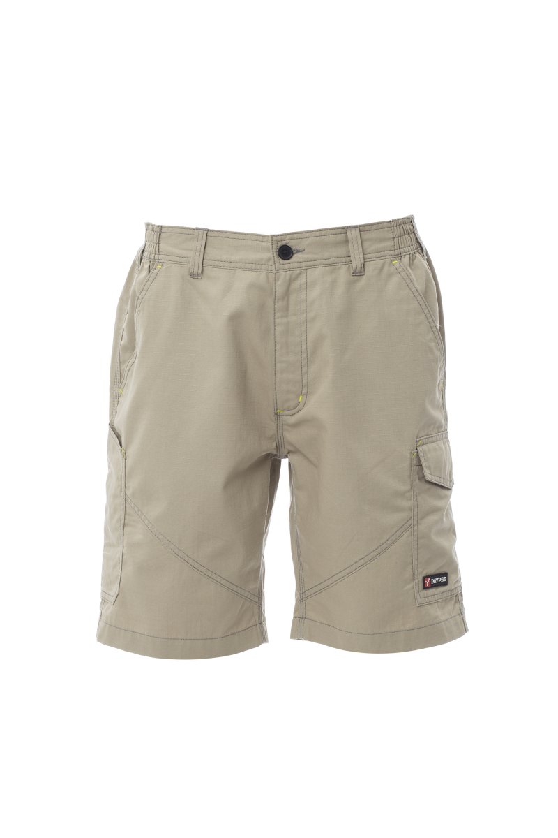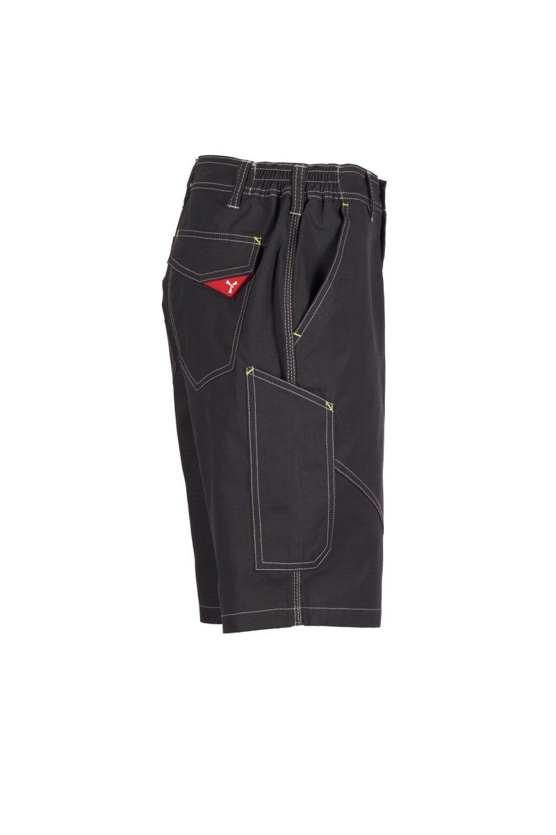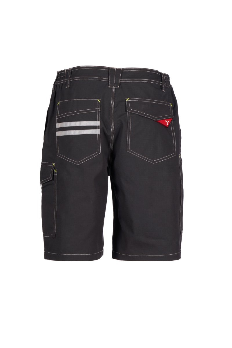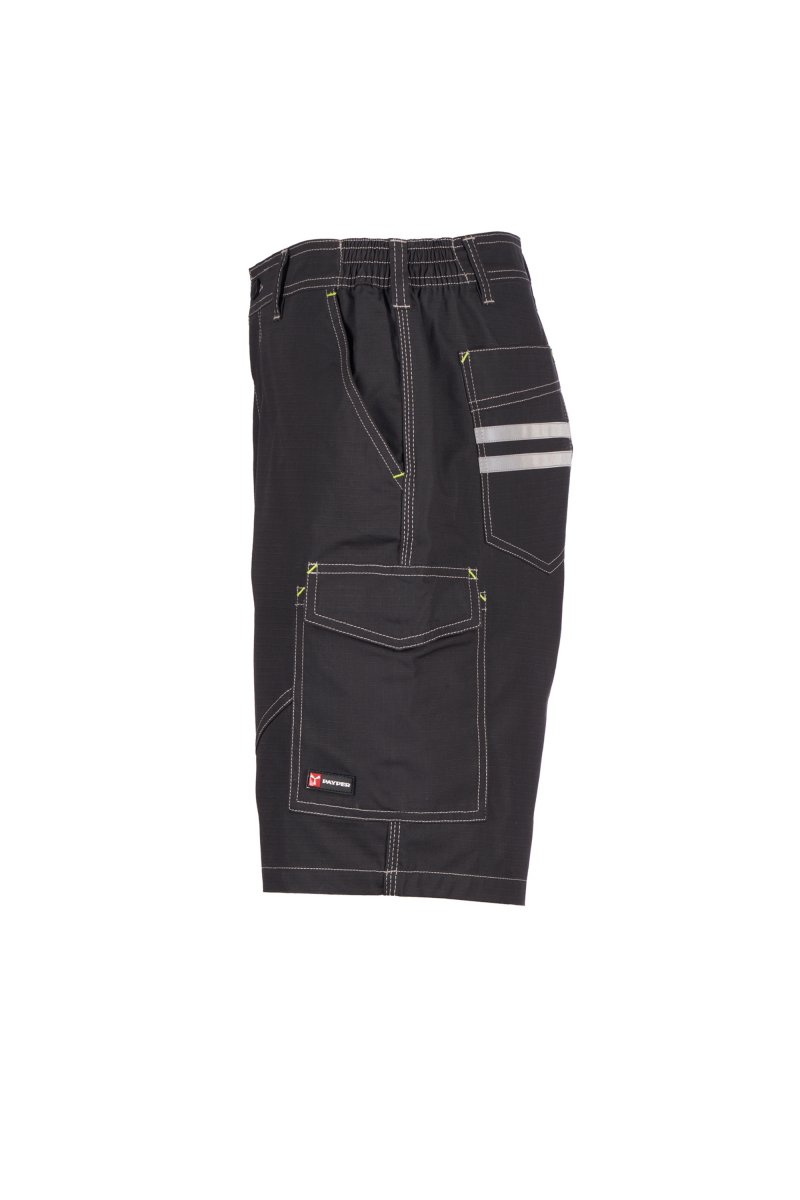 Herenbermuda, elastische zijbanden en riemlussen, sluiting met rits en kunststof knoop, twee voorzakken met klassieke snit, een zijzak met LOCK SYSTEM, een duimstokzak, twee achterzakken, een open zak en een zak met overslag en klittenband, contrasterende inzetstukken en stiksel, reflecterende stroken op achterzak, drievoudig gestikte naden.