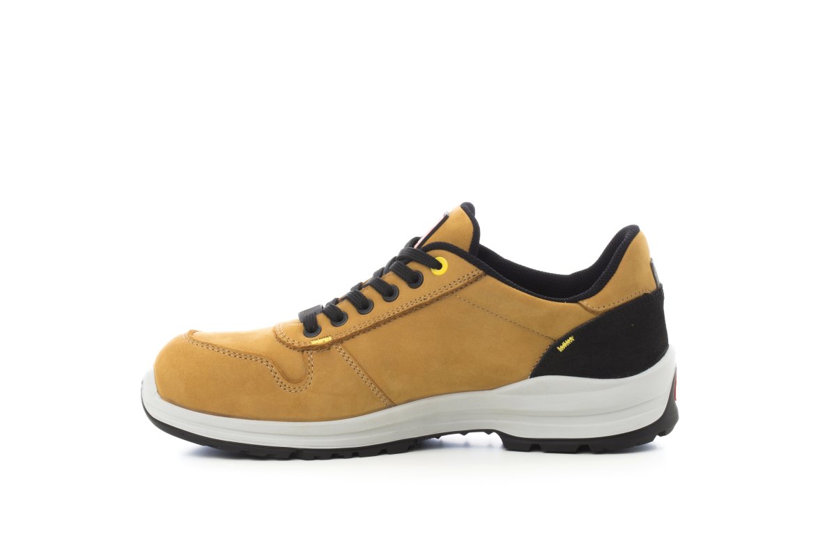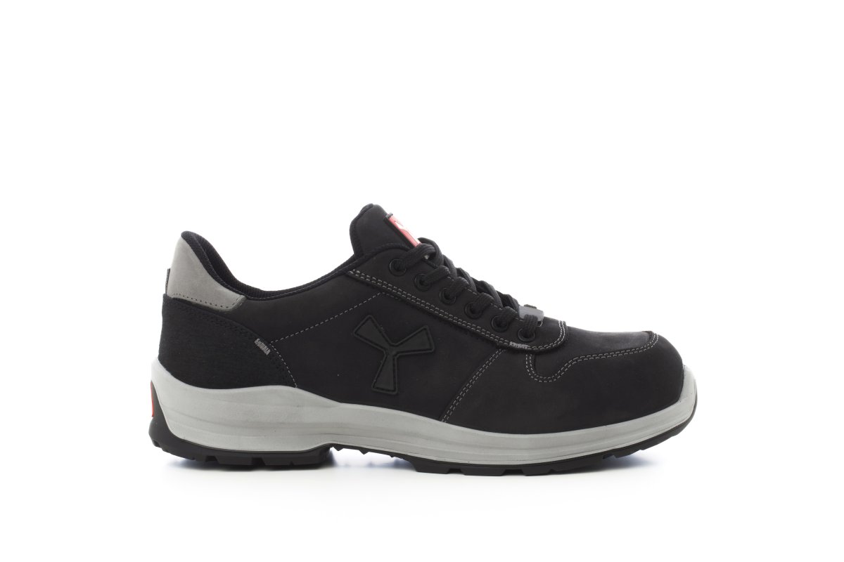 Lage antistatische veiligheidsschoen voor heren, bovenleer in waterafstotend, ademend leer, ademende voering vanbinnen (over het hele binnenoppervlak) bestand tegen wrijving, 6+6 metalfree oogjes, hakbescherming in pampas korrel met reflecterend inzetstuk, schoenneus in gegoten aluminium, verwijderbare inlegzool Ortholite X40 016, zool in stofplaat, gecertificeerd tegen perforatie, cambreur tegen verzwikking, onderneus in hoefijzervorm, binnenzool in zeer lichte polyurethaan, schokdemping MASTER BALANCE in PU polyether met grote stevigheid en uitgebalanceerde densiteit, zool XTRAIL GRIP in TPU met hakbescherming en neusbescherming.