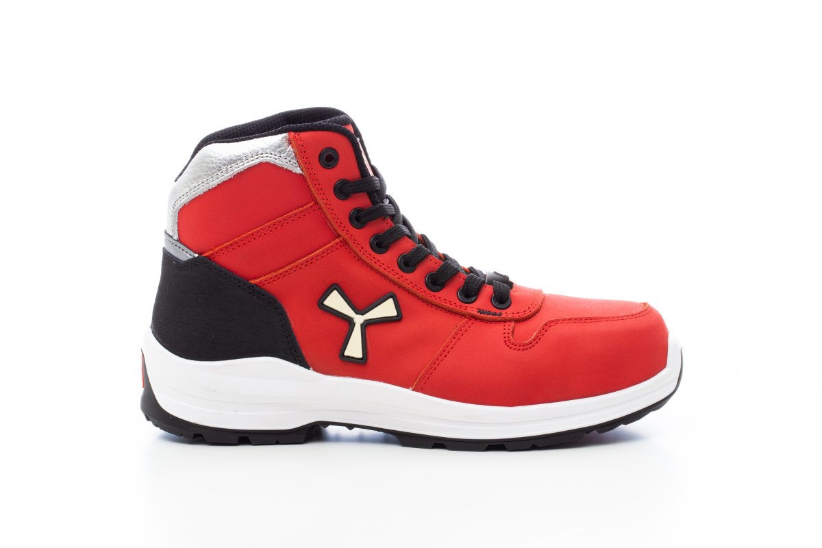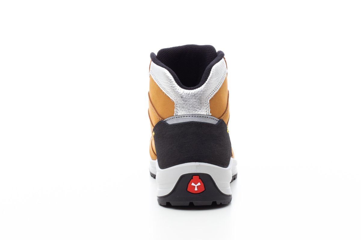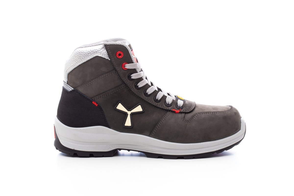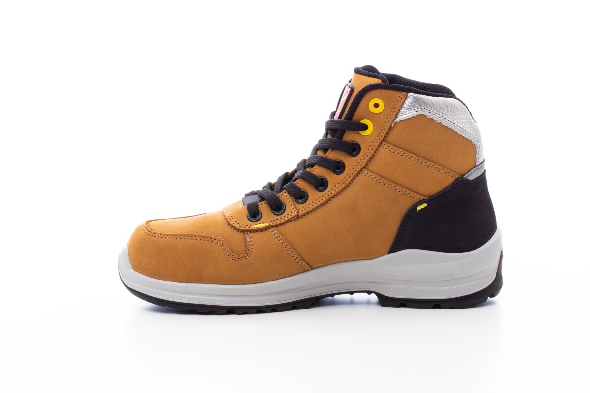 Middelhoge antistatische veiligheidsschoen voor dames, bovenleer in waterafstotend, ademend leer, ademende voering vanbinnen (over het hele binnenoppervlak) bestand tegen wrijving, 8+8 metalfree oogjes, hakbescherming in pampas korrel met reflecterend inzetstuk, schoenneus in gegoten aluminium, verwijderbare inlegzool Ortholite X40 016, zool in stofplaat, gecertificeerd tegen perforatie, cambreur tegen verzwikking, onderneus in hoefijzervorm, binnenzool in zeer lichte polyurethaan, schokdemping MASTER BALANCE in PU polyether met grote stevigheid en uitgebalanceerde densiteit, zool XTRAIL GRIP in TPU met hakbescherming en neusbescherming.
