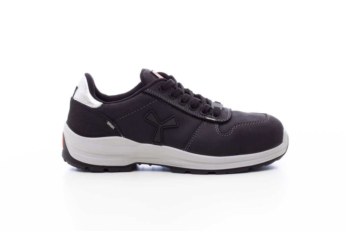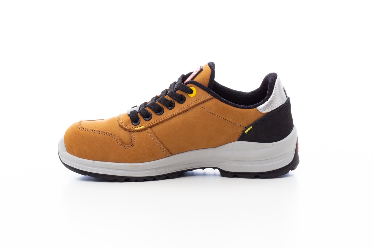 Lage antistatische veiligheidsschoen voor dames, bovenleer in waterafstotend, ademend leer, ademende voering vanbinnen (over het hele binnenoppervlak) bestand tegen wrijving, 6+6 metalfree oogjes, hakbescherming in pampas korrel met reflecterend inzetstuk, schoenneus in gegoten aluminium, verwijderbare inlegzool Ortholite X40 016, zool in stofplaat, gecertificeerd tegen perforatie, cambreur tegen verzwikking, onderneus in hoefijzervorm, binnenzool in zeer lichte polyurethaan, schokdemping MASTER BALANCE in PU polyether met grote stevigheid en uitgebalanceerde densiteit, zool XTRAIL GRIP in TPU met hakbescherming en neusbescherming.