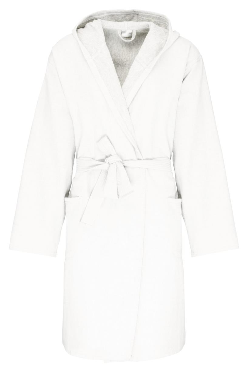 100% katoen. Alle kleuren zijn gemaakt van biologisch katoen. Terrytricot. Voelt aangenaam en zacht aan. Grote capuchon. 2 opgezette zijzakken met een verstevigend stiksel bovenaan. Tailleband met lussen. Ophanglus in de kraag. Dubbel stiksel aan de rand van de capuchon, aan de mouwuiteinden en onderaan. Buisvormig aan de onderste zoom en aan het mouwuiteinde. Gecertificeerd STANDARD 100 by OEKO-TEX® N° CQ 1007/6, IFTH.