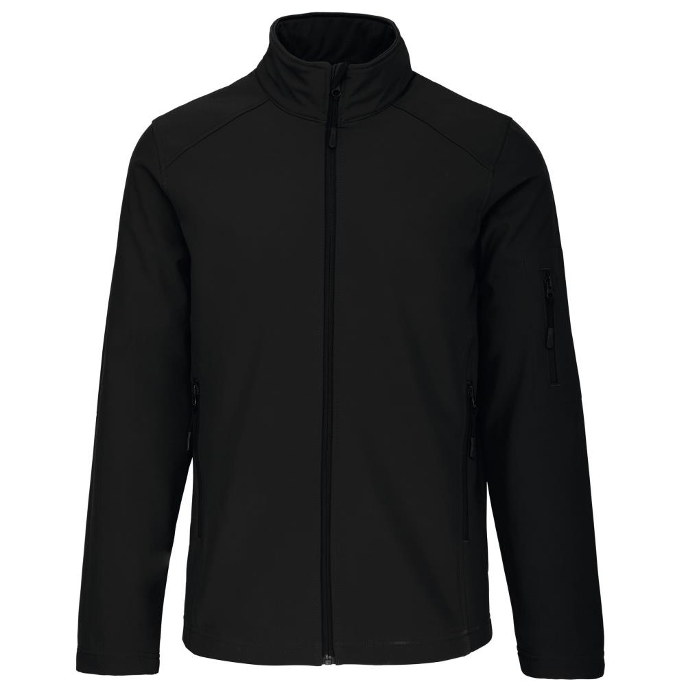 Stof in 3 lagen aan elkaar geklit, ademend 3000 g/m2/24H en 8000 mm waterdicht. Buitenkant: 95% polyester / 5% elasthan. Tussenlaag: ademend membraan. Binnenkant: microfleece. Ritssluiting. Zakken met rits aan de voorkant. 1 zak met rits op de linkermouw.