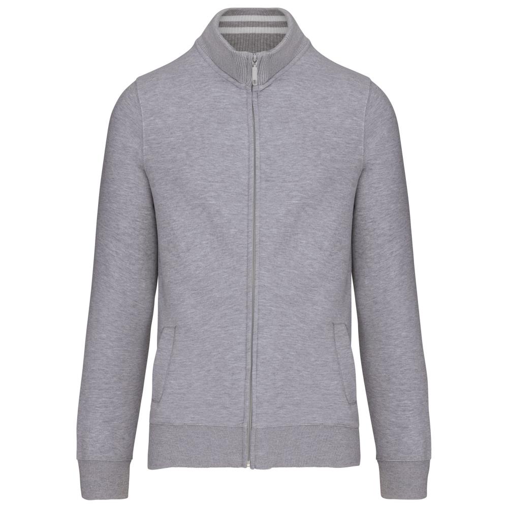 80% gekamd katoen / 20% polyester "Low Shrunkage Fleece". Geborsteld en voorgekrompen fleece aan de binnenkant. Gewassen met siliconen. Getailleerde snit dankzij verticale inzetstukken in rib. Toon op toon nektape. (Behalve voor de kleur White = Oxford Grey nektape) Binnenkant kraag in rib met lijnen in contrastkleur. 2 voorzakken. Ribboord aan de mouwuiteinden en onderaan. Ritssluiting. Gecertificeerd STANDARD 100 by OEKO-TEX® N° CQ 1007/8, IFTH.